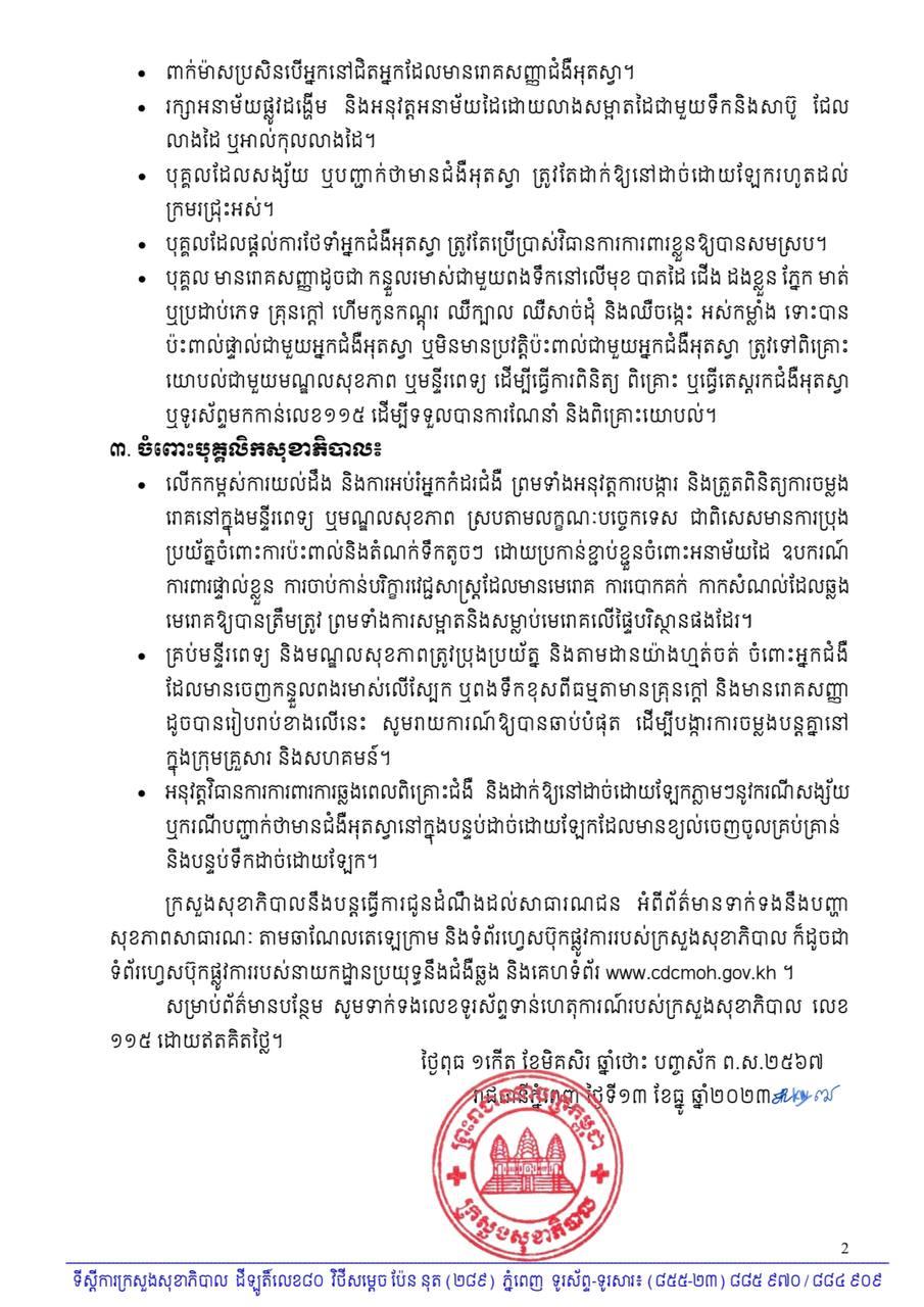 ក្រសួងសុខាភិបាល ប្រកាសពីការរកឃេីញករណីជំងឺអុតស្វាលេីបុរសអាយុ ២៨ឆ្នាំ នៅរាជធានីភ្នំពេញ