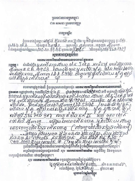 (ភ្នំពេញ)៖ លោក ប្លង់ សុផល ព្រះរាជអាជ្ញារង នៃអយ្យការអមសាលាដំបូងរាជធានីភ្នំពេញ នៅថ្ងៃទី១៩ ខែធ្នូ ឆ្នាំ២០២៣នេះ បានចេញដីកាបញ្ជាឲ្យអ្នកបើករថយន្ដ Jeep ដែលបុកបុរសម្នាក់ស្លាប់នៅខណ្ឌទួលគោក ចូលខ្លួនទៅកាន់សាលាដំបូងរាជធានីភ្នំពេញ បន្ទាប់ពីគេចវេសមិនទទួលខុសត្រូវ ក្រោយបង្កគ្រោះថ្នាក់ចរាចរណ៍ឲ្យអ្នកដទៃស្លាប់។
