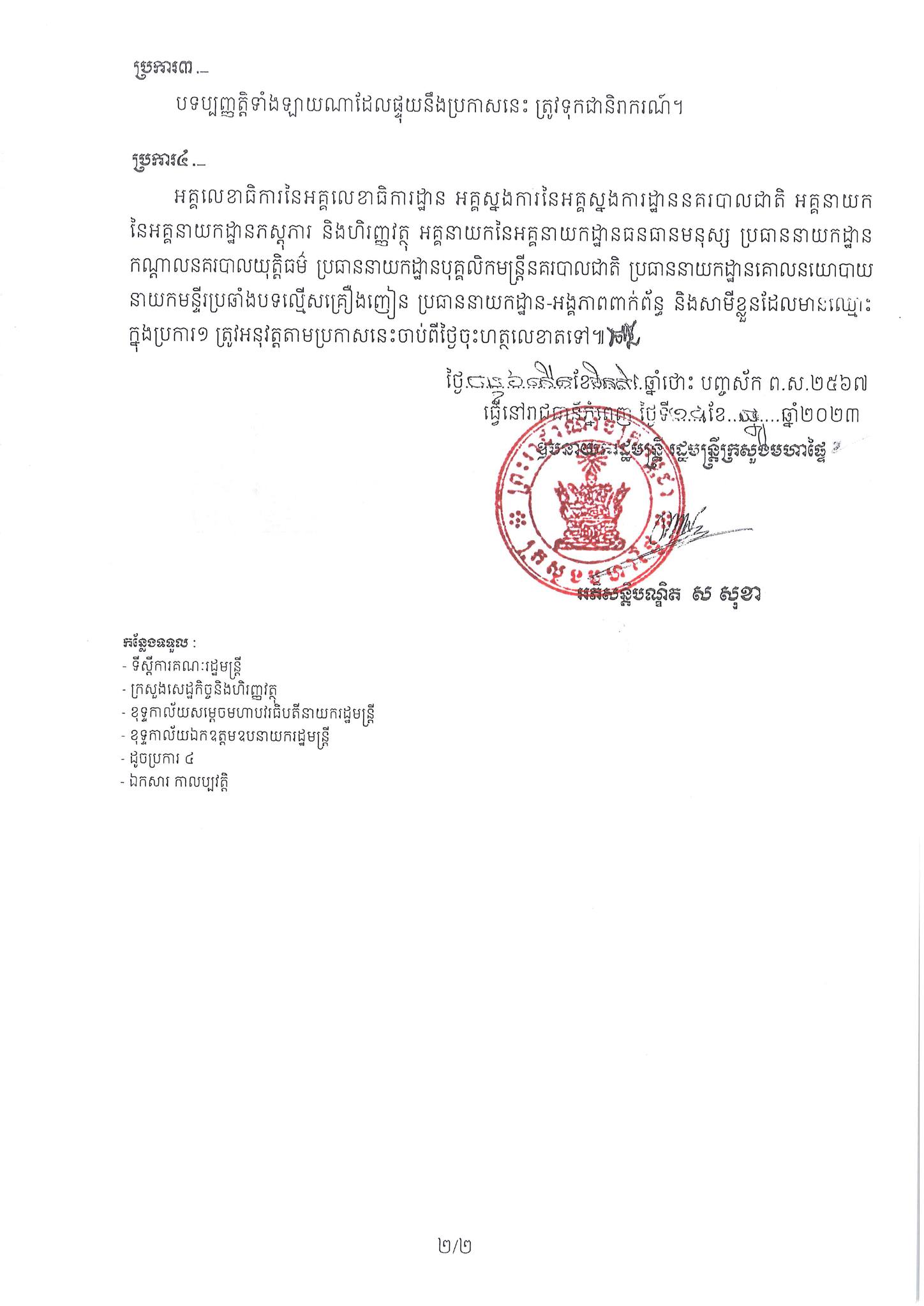 រដ្ឋមន្ត្រីក្រសួងមហាផ្ទៃ អភិសន្តិបណ្ឌិត ស សុខា បានបញ្ជាក់ឱ្យដឹងថា រាល់មន្ត្រីនគរបាលជាតិណាដែលជាប់ពាក់ព័ន្ធនឹងគ្រឿងញៀន គឺត្រូវបណ្តេញចេញពីក្របខណ្ឌដោយគ្មានការលើកលែងឡើយ៕