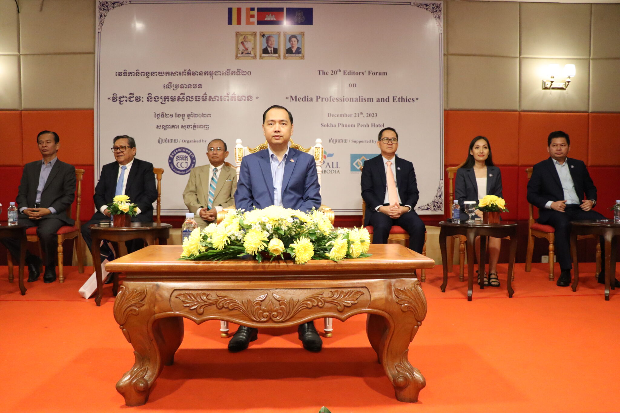 ឯកឧត្តមបញ្ជាក់ដូច្នេះ ក្នុងឱកាសអញ្ជើញចូលរួមវេទិកានិពន្ធនាយកសារព័ត៌មានកម្ពុជា លើកទី២០ លើប្រធានបទ “វិជ្ជាជីវៈ និងក្រមសីលធម៌សារព័ត៌មាន” នាព្រឹកថ្ងៃទី២១ ខែធ្នូ ឆ្នាំ២០២៣នេះ នៅឯសណ្ឋាគារសុខាភ្នំពេញ។