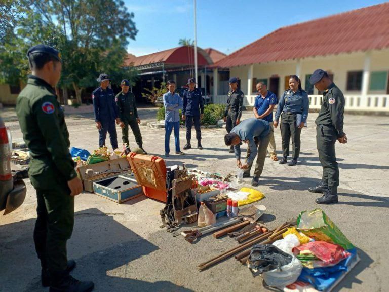 ឆែកឆេរ និងចាប់វត្ថុតាងក្នុងរថយន្តរបស់ជនសង្ស័យរួមមាន៖ ឧបករណ៍ស្រូបរុករករ៉ែចំនួន ០៣ គ្រឿង, ថ្ម ដីច្រកក្នុងថង់ប្លាស្ទិក ដែកឆក់ សម្រាប់យកទៅពិសោធន៍មួយចំនួន ។