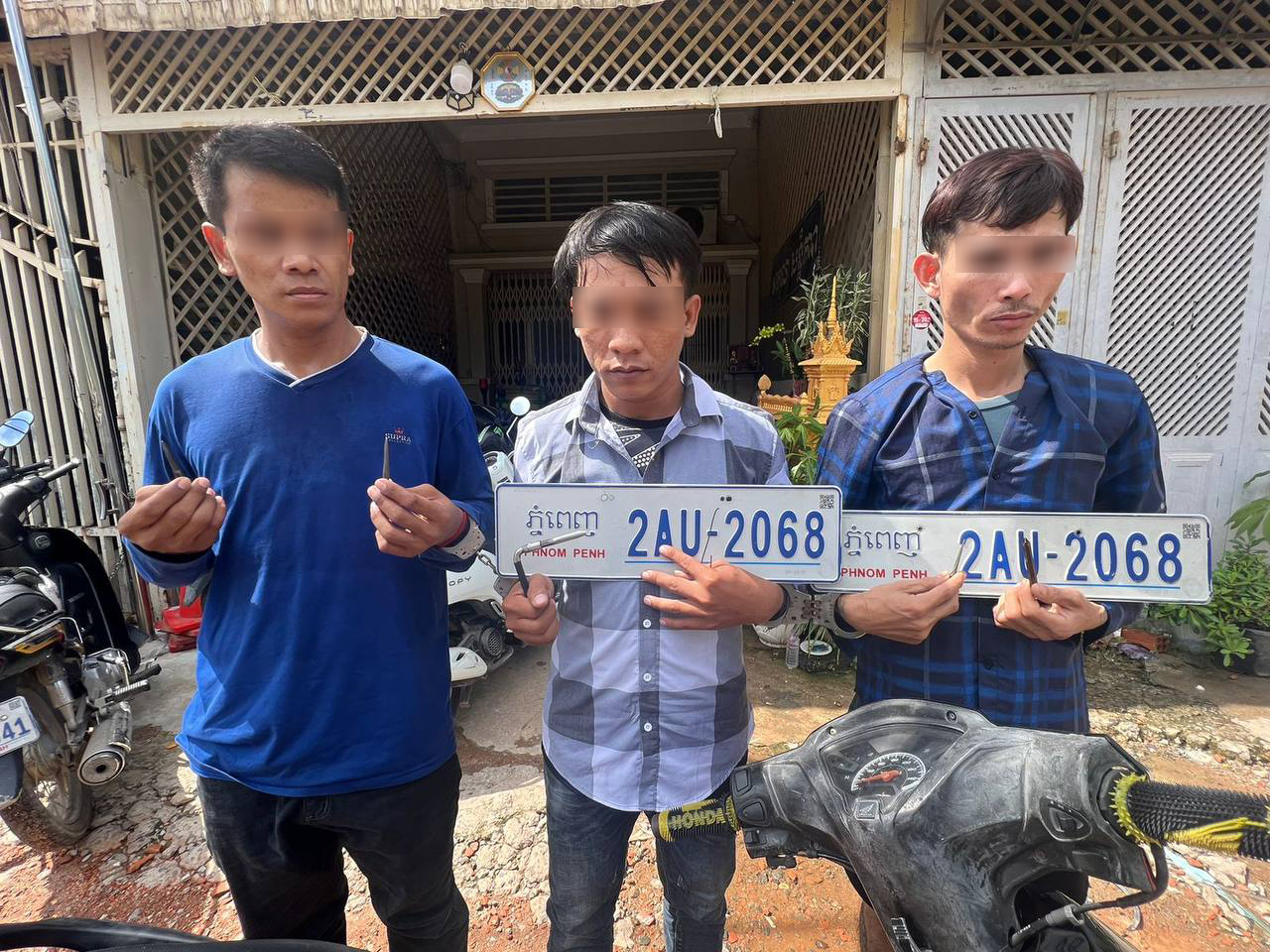 នគរបាលខណ្ឌឬស្សីកែវ ឃាត់ខ្លួនជនសង្ស័យចំនួន៣នាក់ លួចកាច់ផ្លាកលេខរថយន្ត