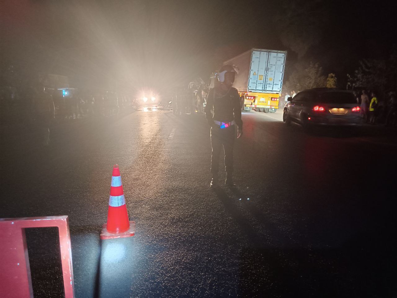 តាមប្រភពព័ត៌មានឲ្យដឹងថា៖ ករណីគ្រោះថ្នាក់ចរាចរណ៍នេះ មានរថយន្តក្បាលអូសសណ្តោងរម៉កមួយគ្រឿង ម៉ាក Hyundai Mighty ពណ៌ស ពាក់ផ្លាកលេខ កំពង់ចាម 3A-3551 មានទិសដៅពីលិចទៅកេីត ចំណែករថយន្តមួយគ្រឿងទៀត ដឹកត្រី ម៉ាក Hyundai Mighty II ពណ៌ស ពាក់ផ្លាកលេខ កំពង់ធំ 3A-3413 មានទិសដៅស្របគ្នា លុះមកដល់ចំណុចកើតហេតុខាងលើ រថយន្តដឹកត្រី បុកពីខាងក្រោយ រថយន្តក្បាលអូសសណ្តោងរម៉ក បណ្តាលអោយស្លាប់មនុស្សចំនួន ០២នាក់ និងរបួសស្រាលចំនួន ០៣នាក់។