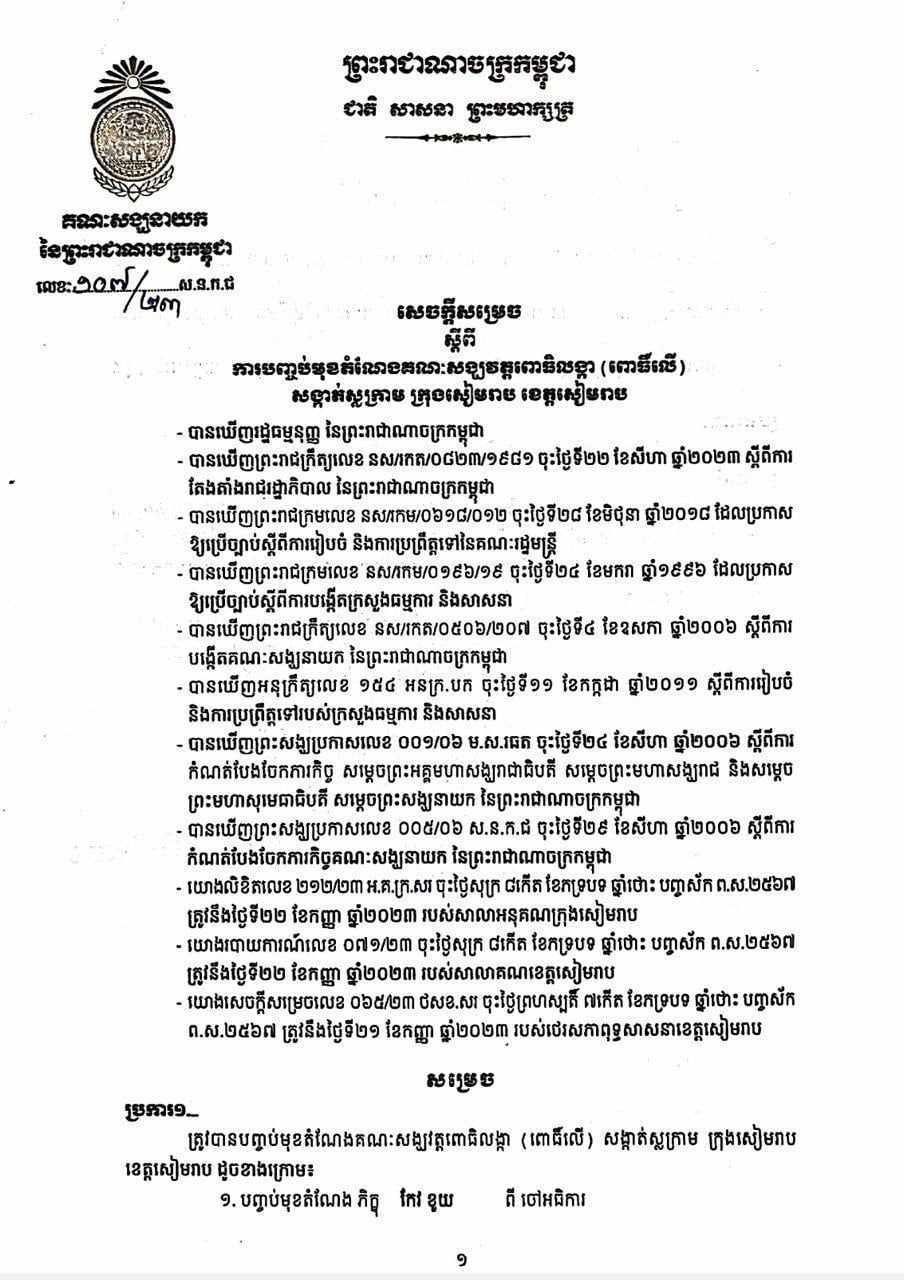 ក្រុងសៀមរាប៖ រចនាសម្ព័ន្ធដឹកនាំវត្តពោធិ៍លង្ការ ត្រូវបានរំសាយចោល រង់ចាំការចាត់តាំងថ្មីព័ត៌មានជាតិវប្បធម៌ និងសិល្បៈ On Nov 13, 2023 47 0 0 47 ចែករំលែកបន្ត
