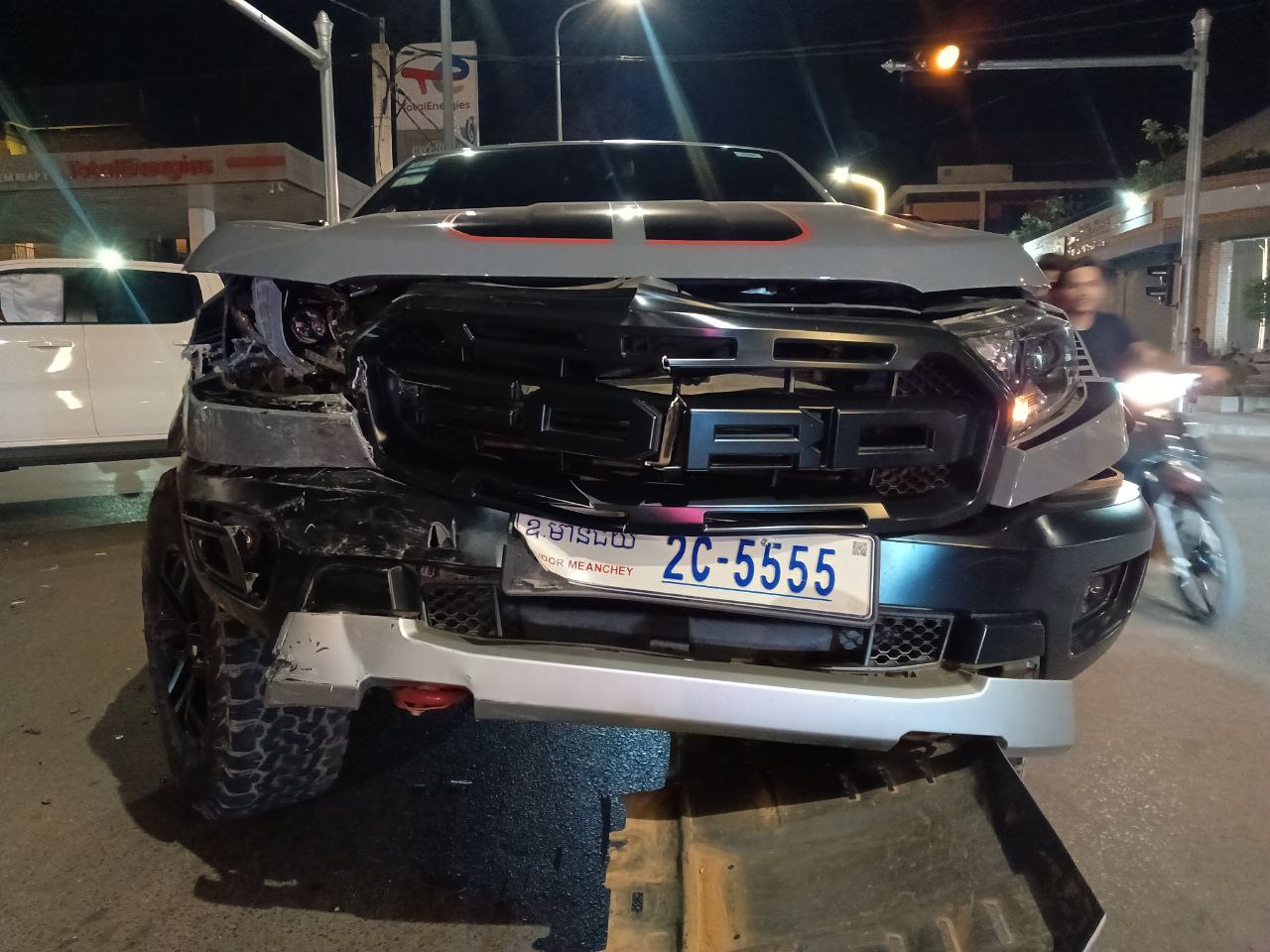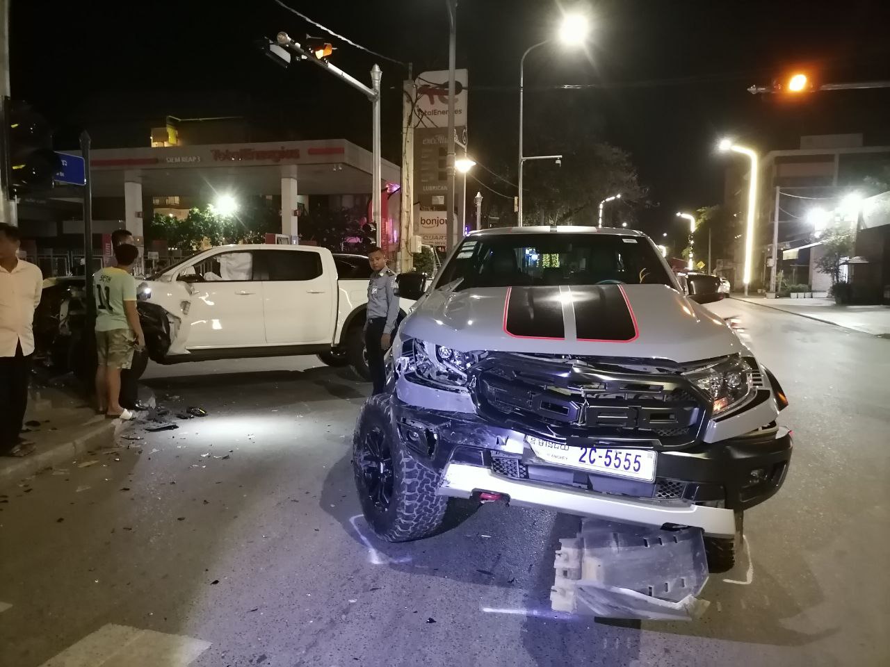 តាមប្រភពបានឲ្យដឹងថា៖ ហេតុការណ៍ខាងលើនេះរថយន្តម៉ាក Ford Ranger Raptor ពណ៌ប្រផេះ ពាក់ផ្លាកលេខ ឧត្តរមានជ័យ 2C-5555 បេីកបរដោយ ឈ្មោះ ជា សុផល ភេទប្រុស អាយុ ៤៥ឆ្នាំ ស្ថិតនៅភូមិសាលាកន្សែង សង្កាត់សាលាកំរើក ក្រុងសៀមរាប ខេត្តសៀមរាប បើកបរមានទិសដៅពីត្បូងទៅជើង ចំណែករថយន្តម៉ាក Ford Ranger XLT ពណ៌ស ពាក់ផ្លាកលេខ សៀមរាប 2C-8371អ្នកបើកបរ មិនស្គាល់អត្តសញ្ញាណ បើកបរមានទិសដៅពីកើតទៅលិច លុះមកដល់ចំណុចកើតហេតុខាងលើបានបុកគ្នា បណ្តាលអោយរថយន្តម៉ាក Ford Ranger Raptor រងការខូចខាតមធ្យម ឯរថយន្តម៉ាក Ford Ranger XLT រងការខូចខាតធ្ងន់ និងបង្គោលភ្លើងស្តុបតូច រងការខូចខាត១ដើម។
