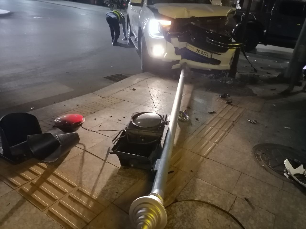 រថយន្តពីរគ្រឿងបុកគ្នា នៅស្តុបវត្តដំណាក់ ក្រុងសៀមរាប រងការខូចខាតរថយន្ត និងបង្គោលភ្លើងស្តុបតូច