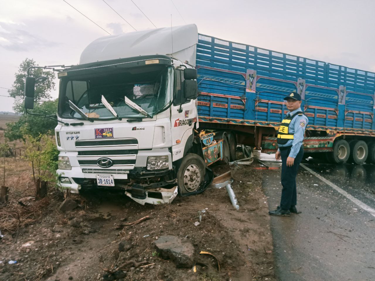 តាមប្រភពបានឲ្យដឹងថា៖  ករណីគ្រោះថ្នាក់ចរាចណ៍នេះ រថយន្តម៉ាក LEXUS RX300 ពណ៌ខ្មៅ ពាក់ផ្លាកលេខ កណ្តាល 2A-6396 បើកបរដោយឈ្មោះ ម៉េង សាម៉េត ភេទប្រុស អាយុ ៤០ឆ្នាំ រស់នៅភូមិបាឡាត់ ឃុំនរា ស្រុកសង្កែរ ខេត្តបាត់ដំបង បើកបរមានទិសដៅពីកើតទៅលិច បានបើកឡើងវ៉ាជែង ពេលមេឃកំពុងតែភ្លៀង។ ចំណែករថយន្តក្បាលអូសសណ្តោងរឺម៉កម៉ាក HYUNDAI ពណ៌ស ពាក់ផ្លាកលេខ កំពង់ចាម 3A-1614 និងរ៉ឺម៉កពីក្រោយ ពណ៌ក្រហម ផ្លាកលេខ កំពង់ចាម 4A-1785 អ្នកបើកបរមិនដឹងអត្តសញ្ញាណ បើកបរមានទិសដៅពីកើតទៅលិច បានរ៉េចង្កូតមកឆ្វេង បុកក្បាលរថយន្តម៉ាក  LEXUS RX 300 និងបុកបង្កាន់ដៃស្ពាន បណ្ដាលឱ្យរងការខូចខាតរថយន្តទាំងពីរគ្រឿង និងខូចបង្កាន់ដៃស្ពាន១ផ្ទាំងផងដែរ។