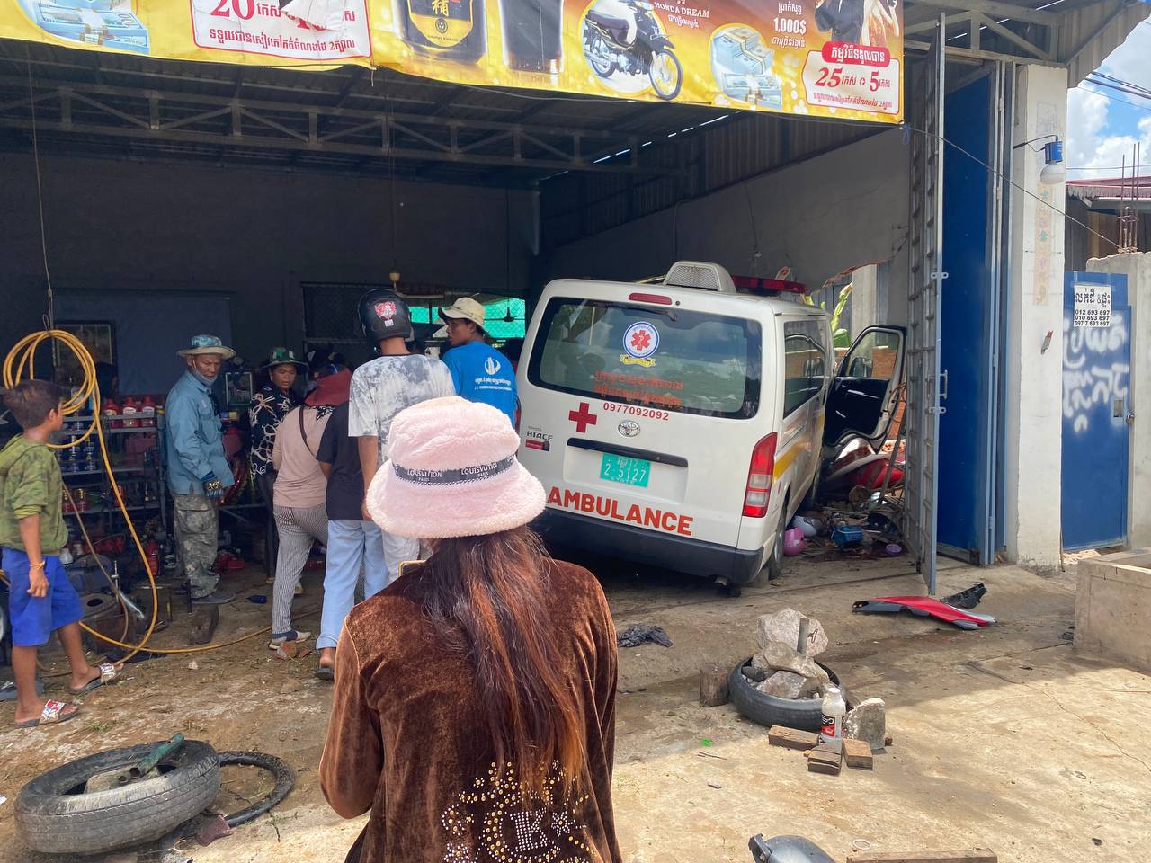 រថយន្តសង្គ្រោះមន្ទីរពេទ្យបង្អែកស្រុកថ្មពួក បុករះចូលផ្ទះជាងជួសជុលម៉ូតូ បណ្តាលឱ្យស្លាប់មេជាងម្នាក់ នៅក្រុងសិរីសោភ័ណ