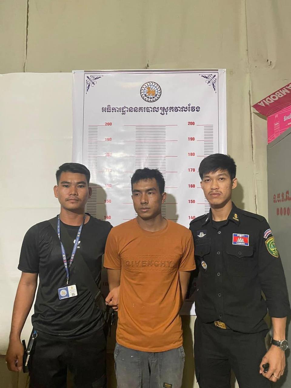 តាមប្រភពព័ត៌មានបានឲ្យដឹងនៅរសៀលថ្ងៃអង្គារនេះថា កម្លាំងអធិការដ្ឋាននគរបាលស្រុកវាលវែង ដឹកនាំដោយលោក វរសេនីយ៍ឯក ធាង ឡេង អធិការនគរបាលស្រុក បានចុះបង្ក្រាបមុខសញ្ញាឃាតកម្ម កាលពីថ្ងៃទី១៩ ខែឧសភា ឆ្នាំ២០២៤ វេលាម៉ោង ១៧និង៣០ នាទី នៅភូមិពោធិលេី ឃុំត្រេីយស្លា ស្រុកស្អាង ខេត្តកណ្ដាល។ ជនសង្ស័យក្រោយពីបានប្រព្រឹត្ត រត់គេចខ្លួនមកស្រុកវាលវែង ក៏ត្រូវបានកម្លាំងសមត្ថកិច្ចចាប់ខ្លួនបានតែម្ដង។