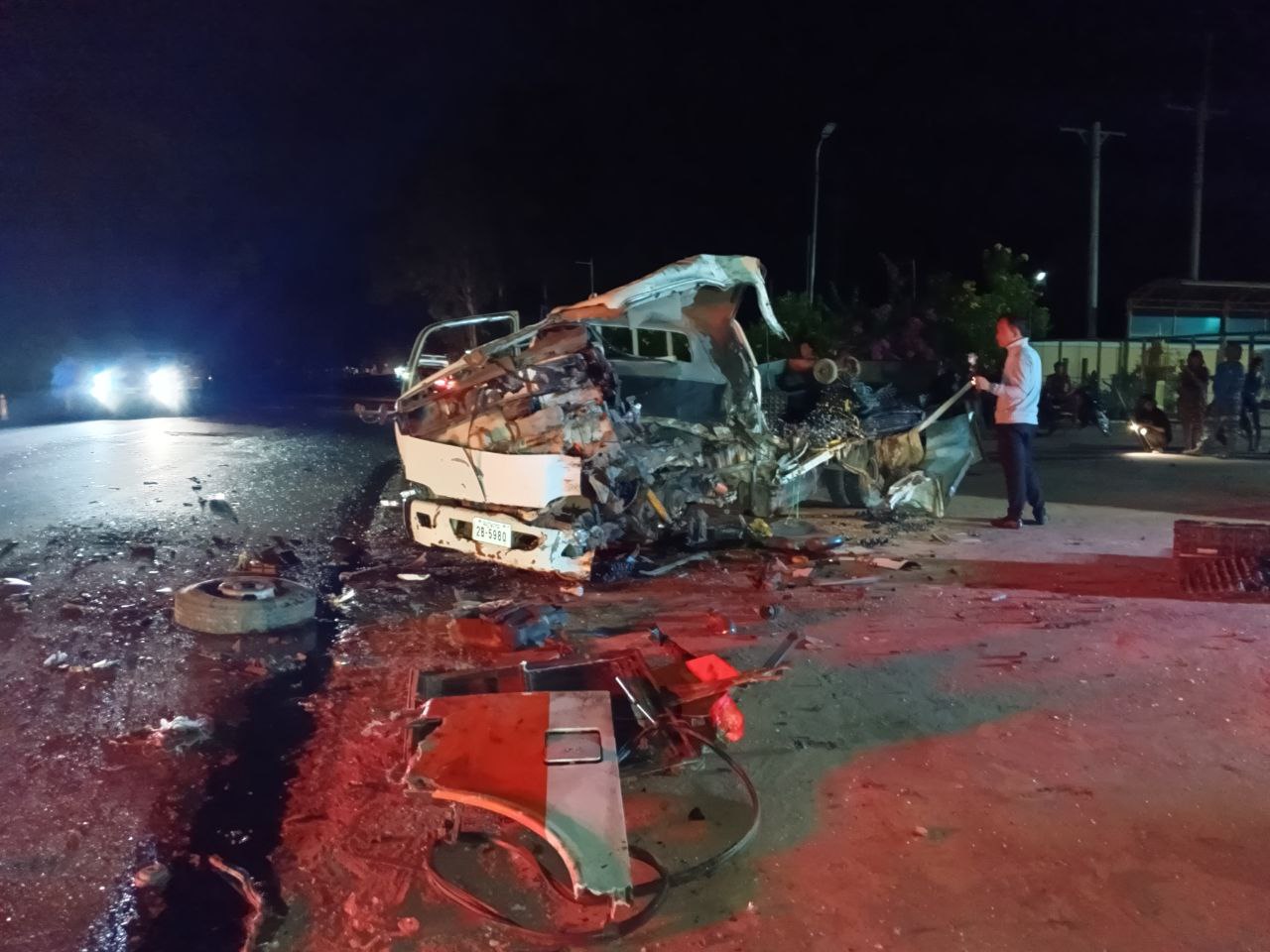 ខេត្តសៀមរាប៖ មានករណីគ្រោះថ្នាក់ចរាចរណ៍ដ៏រន្ធត់មួយ រវាងរថយន្តក្រុងជាមួយរថយន្ត ១តោនកន្លះ ដឹកពងមាន់ពងទា និងម៉ូតូសង់ឌ្រីមមួយគ្រឿងទៀត បណ្តាលឲ្យបុរសម្នាក់ជាតៃកុងរថយន្ត ១តោនកន្លះ បានបាត់បង់ជីវិតភ្លាមៗនៅនឹងកន្លែងកើតហេតុ និងព្រូឡានរងរបួសស្រាល ចំណែកភាគីម៉ូតូរងរបួសម្នាក់ ហេតុការណ៍នេះបានកើតឡើងនៅវេលាម៉ោង ២០និង៥០នាទីយប់ ត្រូវថ្ងៃទី២៥ ខែឧសភា ឆ្នាំ២០២៤ ស្ថិតនៅតាមបណ្តោយផ្លូវជាតិលេខ៦ ខាងកើតផ្សារអង្រ្កង ក្នុងភូមិស្វាយជ័យ ឃុំត្រាំងធំ ស្រុកប្រាសាទបាគង ខេត្តសៀមរាប។