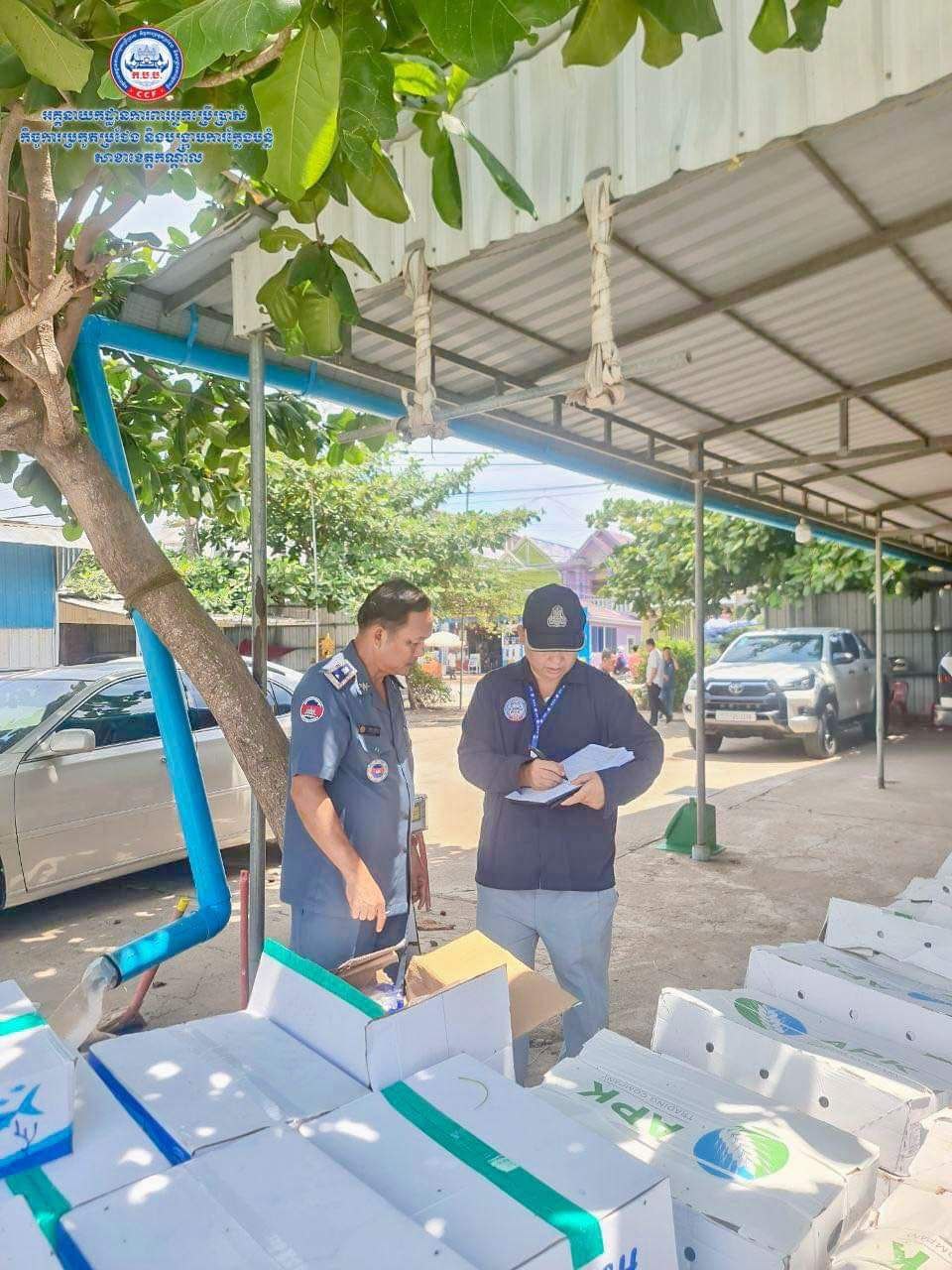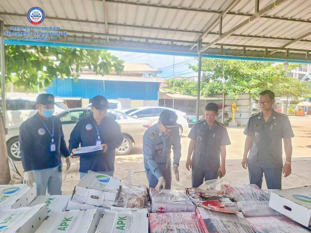ខេត្តកណ្ដាល ៖ នៅថ្ងៃទី២៥ ខែឧសភា ឆ្នាំ២០២៤ ដឹកនាំដោយព្រះរាជអាជ្ញារង តំណាងអយ្យការអមសាលាដំបូងខេត្តកណ្តាល មន្រ្តីសាខា ក.ប.ប. ខេត្តកណ្តាល បានសហការជាមួយការិយាល័យស្រាវជ្រាវ និងបង្រ្កាបអំពើរត់ពន្ធតំបន់២ សាខាគយ និងរដ្ឋាករខេត្តកណ្តាល ប្រធានច្រកទ្វារព្រំដែនអន្តរជាតិជ្រៃធំ និងនាយប៉ុស្តិ៍សំពៅពូន បានធ្វើការត្រួតពិនិត្យ សាច់បង្កកនាំចូលតាមច្រកជ្រៃធំ សរុបចំនួន ៦.០៥ តោន ។