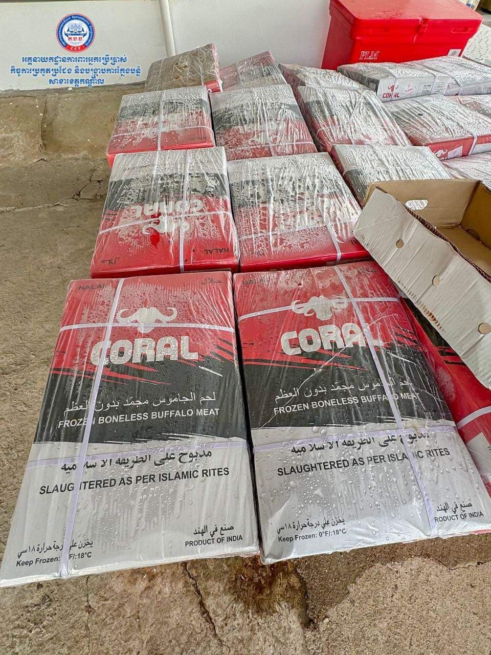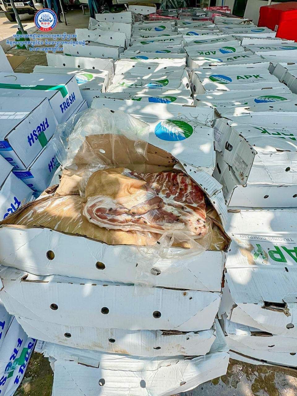 ក្នុងនោះមន្រ្តីជំនាញ បានរកឃើញថា សាច់ក្របីបង្កក ម៉ាក CORAL ចំនួន ១០០ កេស (១កេស=២១គីឡូក្រាម) = ២១០០ គីឡូក្រាម (ប្រភពប្រទេសឥណ្ឌា) សាច់ជ្រូកបង្កកម៉ាក APK ចំនួន ២០០ កេស (១កេស=១៧គីឡូក្រាម) = ៣៤០០ គីឡូក្រាម (ប្រភពប្រទេសរុស្ស៊ី) មឹកបង្កក ម៉ាក FRESH ចំនួន ៥០ កេស (១កេស=១១គីឡូក្រាម) = ៥៥០ គីឡូក្រាម (ប្រភពប្រទេសចិន) សរុបទាំងអស់ចំនួន ៦.០៥០ គីឡូក្រាម ដឹកជញ្ជូនមិនត្រឹមត្រូវតាមលក្ខណៈស្តង់ដារបច្ចេកទេស ហើយសាច់បង្កកទាំងនោះ បានខូចគុណភាពទៅហើយ ។