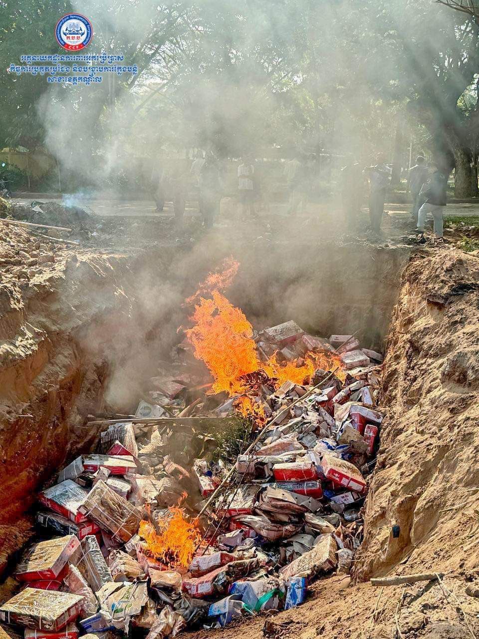 ដោយមានការឯកភាពពី ព្រះរាជអាជ្ញារង មន្ត្រីជំនាញ ក.ប.ប. និងស្ថាប័នពាក់ព័ន្ធ បានសម្រេចធ្វើការដុតកម្ទេចចោល សាច់បង្កកខូចគុណភាពទាំងនោះទៅតាមនីតិវិធី នៅក្នុងបរិវេណការិយាល័យគយ និងរដ្ឋាករជ្រៃធំ ជៀសវាងប៉ះពាល់សុខភាពអ្នកប្រើប្រាស់ ប្រសិនបើផលិតផលសាច់បង្កកទាំងនោះ បានលក់នៅលើទីផ្សារ ៕