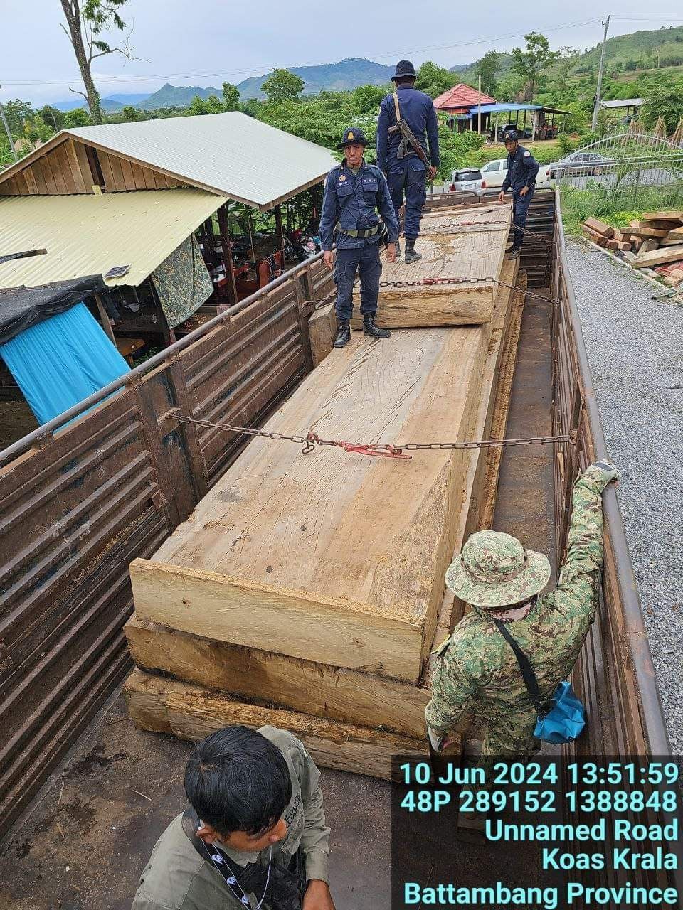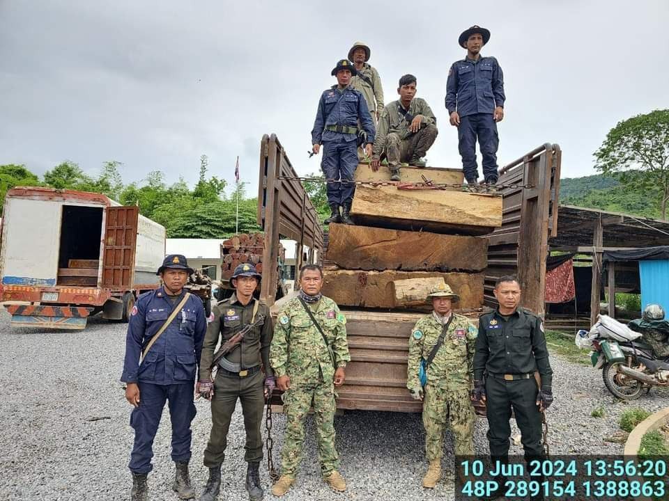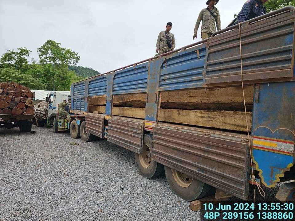 ខេត្តបាត់ដំបង៖ រថយន្តដឹកឈើ ០១ គ្រឿង សុទ្ធតែប្រភេទមុខធំៗ ត្រូវបានកម្លាំងមន្រ្តីឧទ្យានុរក្សប្រចាំការស្នាក់ការច្រកចង្អៀត បានសហការជាមួយសមត្ថកិច្ចប្រចាំការស្នាក់ការថ្មដា និងអង្គការសម្ព័ន្ធមិត្តសត្វព្រៃ (W.A) ប្រចាំស្នាក់ការល្បាតច្រកចង្អៀត នៅត្រង់ចំណុចភូមិសាស្រ្តមុខស្នាក់ការច្រកចង្អៀត ស្ថិតក្នុងភូមិព្រៃធំ ឃុំកំពង់ល្ពៅ ស្រុកសំឡូត នាថ្ងៃទី១០ ខែមិថុនា ឆ្នាំ២០២៤ ។