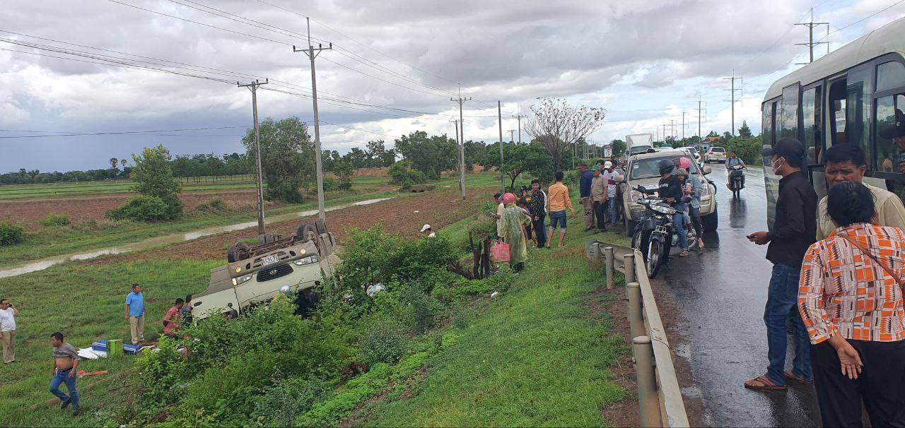 ខេត្តសៀមរាប៖ រថយន្តកូរ៉េប្រភេទទេសចរណ៍ តែដឹកគ្រឿងសំណង់ ០១ គ្រឿង បើកបរល្បឿនលឿន រេចង្កូតធ្លាក់ផ្លូវ ក្រឡាប់ផ្ងារជើងចូលវាលស្រែ បណ្ដាលឱ្យរងរបួសធ្ងន់អ្នកបើកបរ និងស្ត្រីម្នាក់រងរបួសស្រាល ។