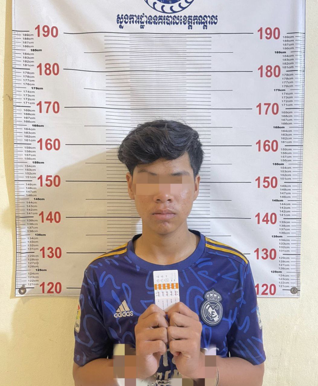 ទី២.ឈ្មោះ រ៉េត ធារិទ្ធ ភេទប្រុស អាយុ១៦ឆ្នាំ ជនជាតិខ្មែរ មុខរបរ មិនពិតប្រាកដ មានទីលំនៅ ឃុំកោះខ្សាច់ទន្លា ស្រុកស្អាង ខេត្តកណ្តាល (រត់គេចខ្លួន)។