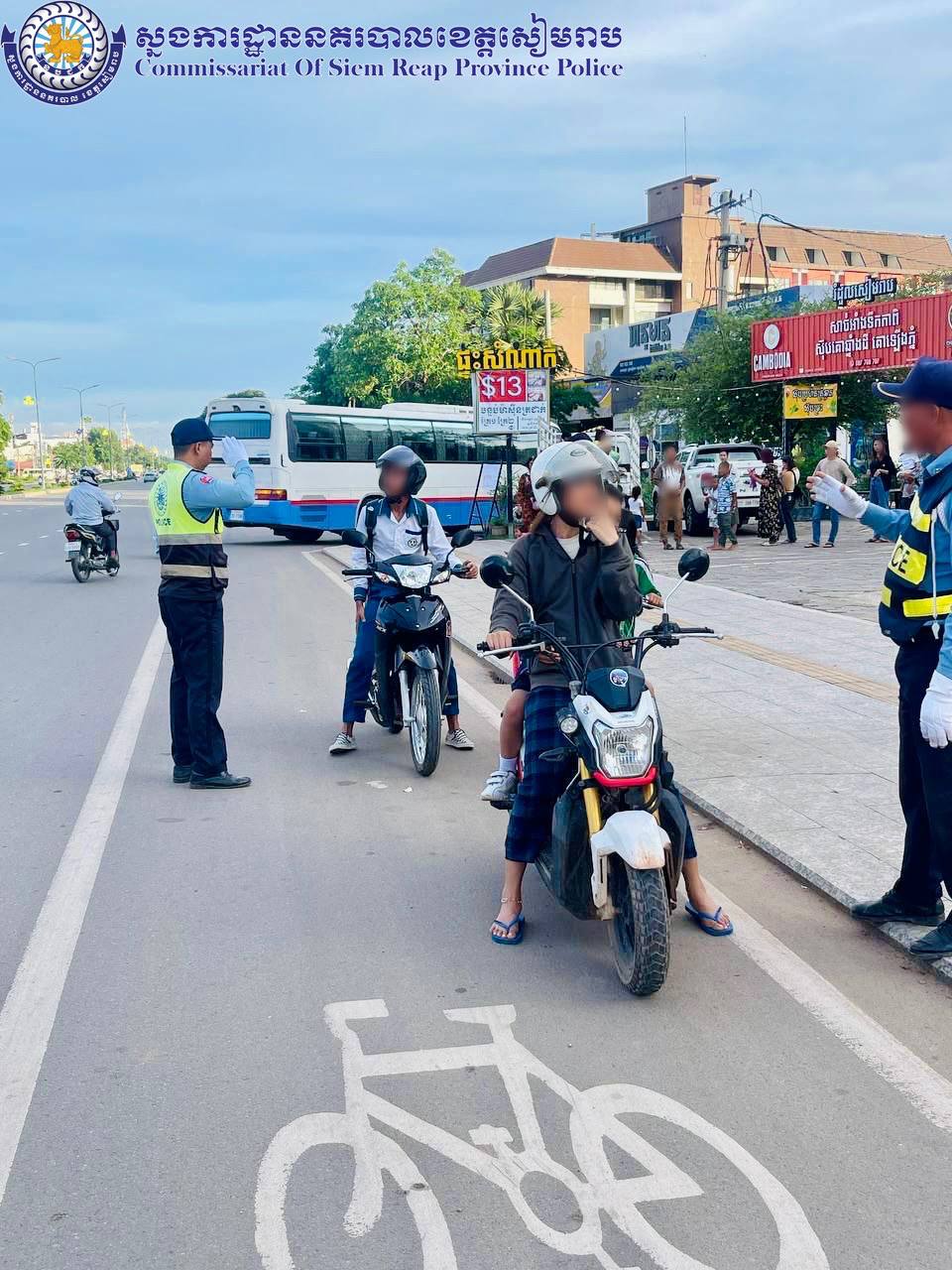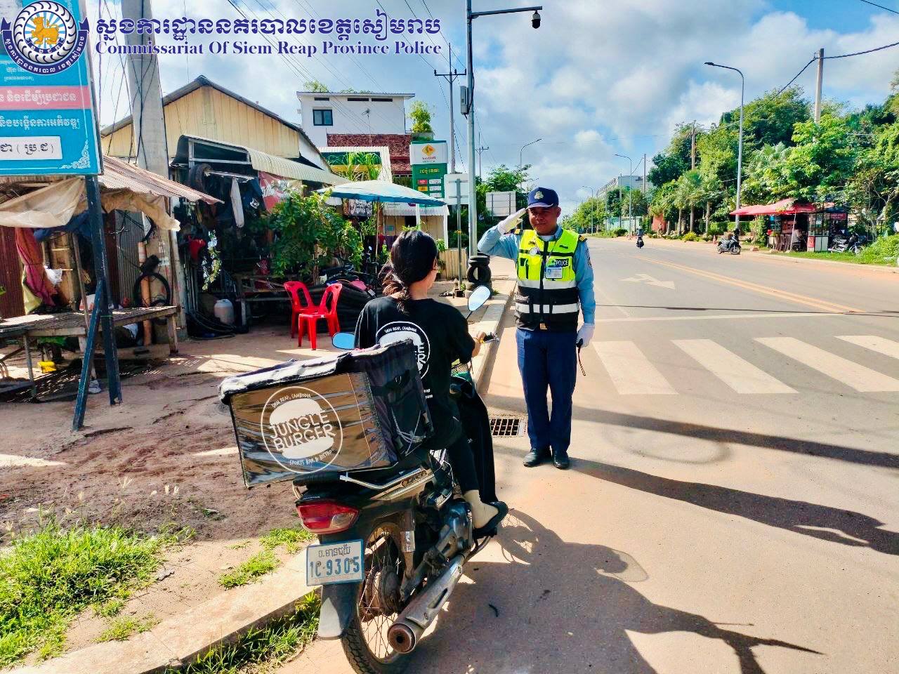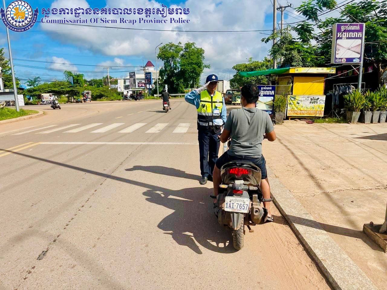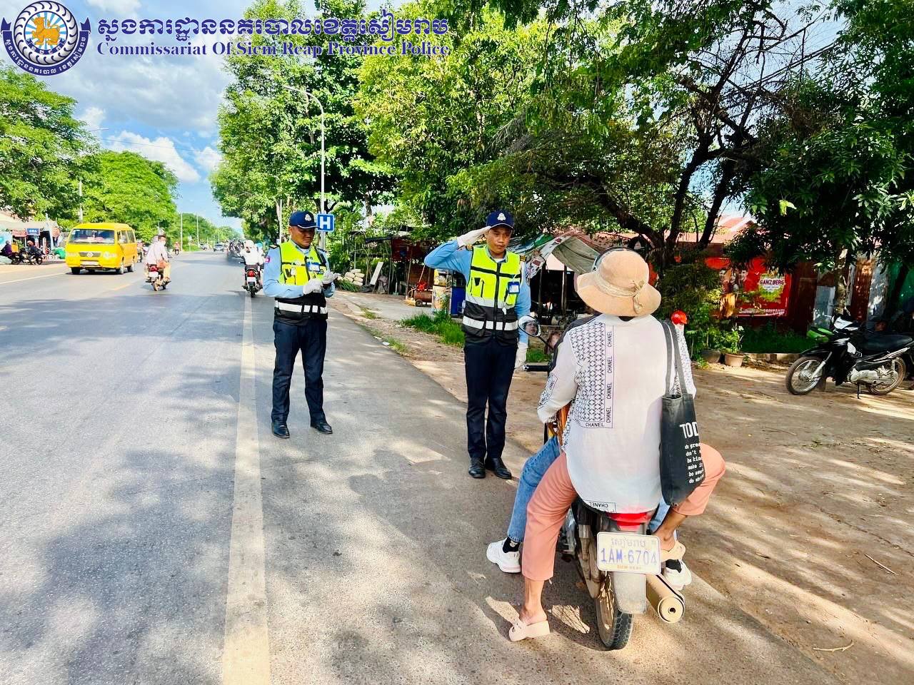 សៀមរាប៖ ថ្ងៃអាទិត្យ ២កើត ខែអាសាឍ ឆ្នាំរោង ឆស័ក ពុទ្ធសករាជ ២៥៦៨ ត្រូវនឹងថ្ងៃទី០៧ ខែកក្កដា ឆ្នាំ២០២៤ ដោយបានការចង្អុលបង្ហាញពី លោកឧត្តមសេនីយ៍ទោ ហួត សុធី ស្នងការ នគរបាលខេត្ត កម្លាំងនគរបាលចរាចរណ៍ផ្លូវគោក នៃស្នងការដ្ឋាននគរបាលខេត្តសៀមរាប បានបន្តចុះផ្សព្វផ្សាយអប់រំរៀបចំសណ្តាប់ធ្នាប់ ណែនាំដល់អ្នកបើកបរយានយន្តគ្រប់ប្រភេទដែលឈប់ចត ធ្វើដំណើរលើដងផ្លូវឲ្យបើកបរគោរពទៅតាមស្លាកសញ្ញា,គំនូសសញ្ញា,ភ្លើងសញ្ញចរាចរណ៍,ពាក់មួកសុវត្ថិភាព ខ្សែក្រវាត់សុវត្ថិភាពឲ្យបានត្រឹមត្រូវគ្រប់ពេលធ្វើដំណើរ។