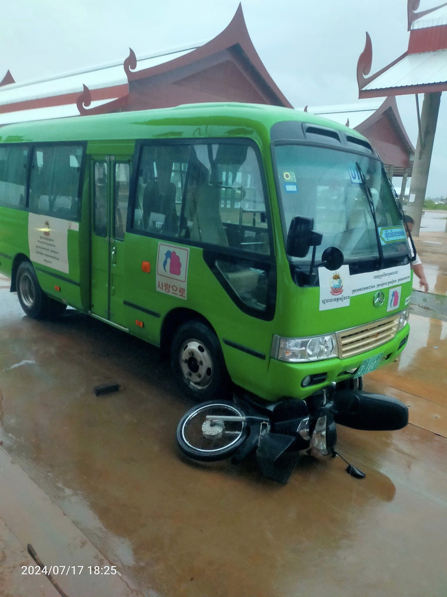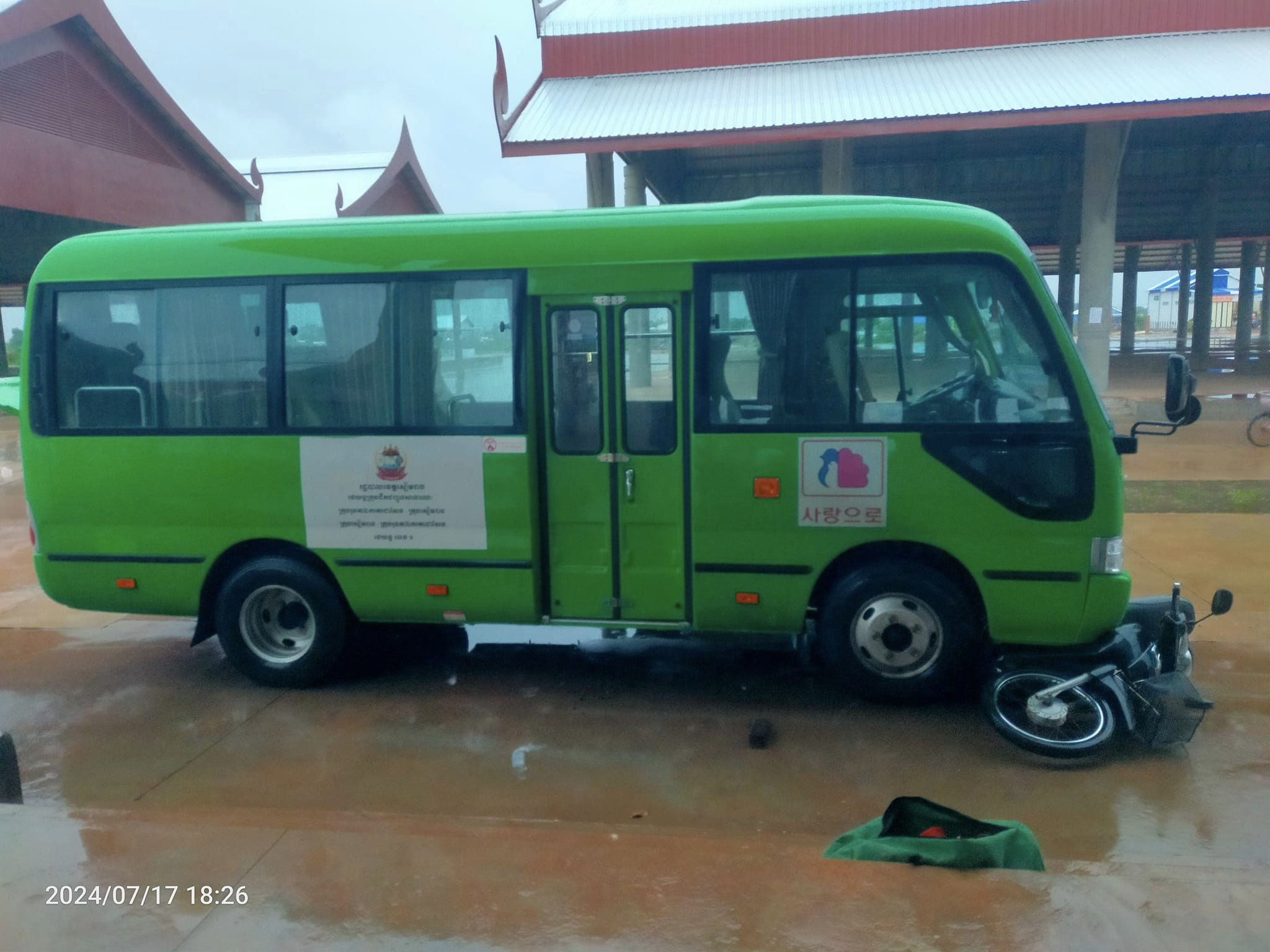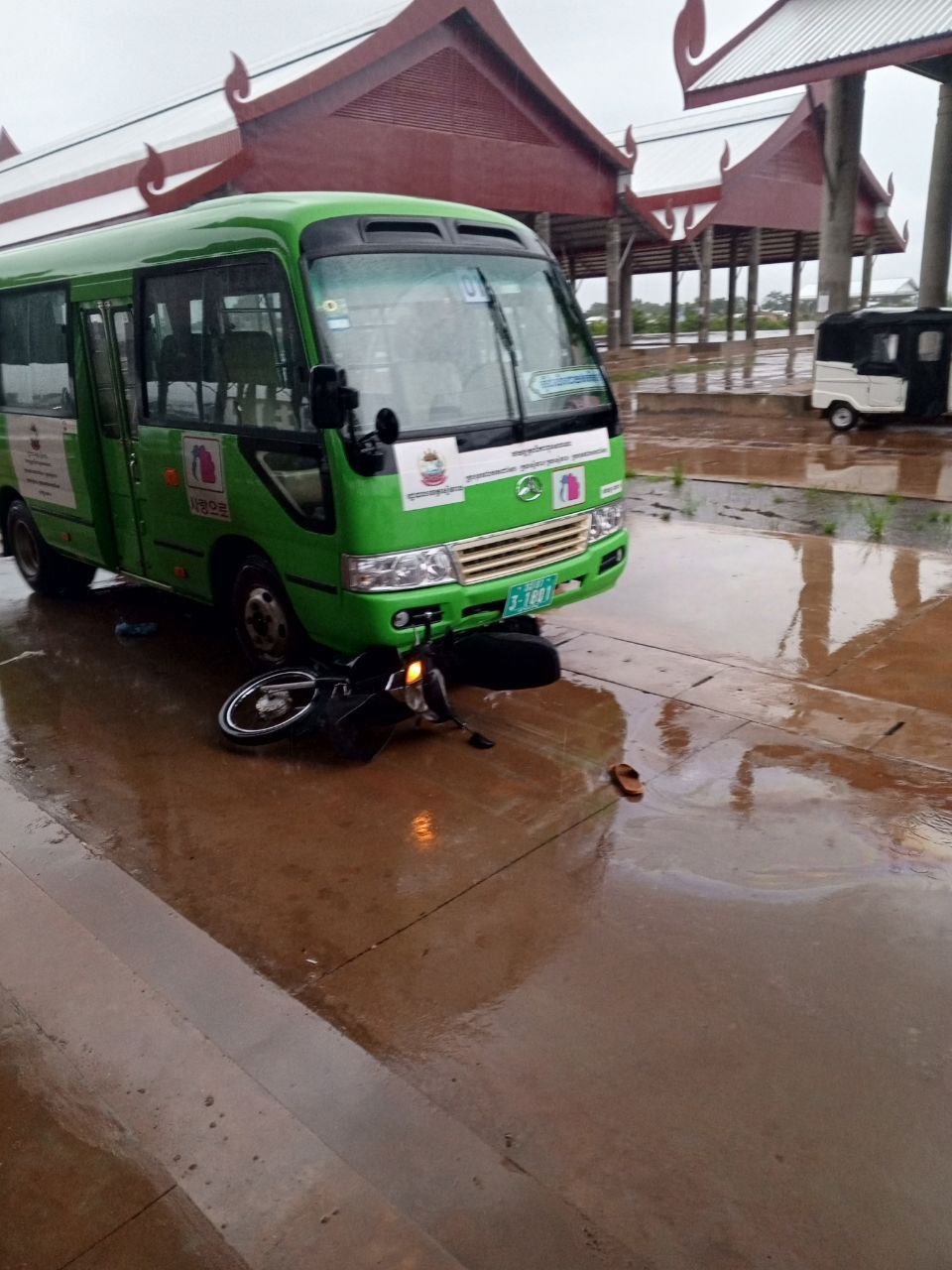 រថយន្តដឹកអ្នកដំណើរសាធារណ: បុកម៉ូតូបណ្ដាឱ្យស្រ្តីម្នាក់រងរបួសធ្ងន់ នៅក្រុងរុនតាឯកតេជោសែន