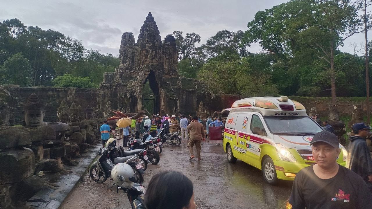 ខេត្តសៀមរាប៖ នៅវេលាម៉ោង ១៧និង៣០នាទីល្ងាច ត្រូវថ្ងៃទី២៣ ខែកក្កដា ឆ្នាំ២០២៤ មានភ្លៀងមួយមេធំលាយឡំជាមួយខ្យល់កន្ត្រាក់ បណ្តាលឱ្យដួលរលំដើមឈើដ៏ធំ១ដើម សង្កត់មកលើ រូបចម្លាក់ និងសង្កត់មកលើរ៉ឺម៉កម៉ូតូមួយគ្រឿង បណ្ដាលអោយអ្នកធ្វើដំណើរជាជនជាតិខ្មែរ បានស្លាប់ម្នាក់ ដែលជាអ្នកបើកបរ និងរងរបួសចំនួន ០៣នាក់ របួសធ្ងន់ម្នាក់ និងរបួសស្រាល០២នាក់ ខណៈកំពុងធ្វើដំណើរតាមដងផ្លូវឆ្លងកាត់តាមប្រាសាទក្លោងទ្វារទន្លេអ៊ុំ ដែលស្ថិតនៅតាមបណ្តោយផ្លូវស្ពានទន្លេអុំឆ្លងកាត់ចូល ប្រាសាទបាយ័ន ក្នុងភូមិត្រពាំងសេះ សង្កាត់គោកចក ក្រុងខេត្តសៀមរាប ខេត្តសៀមរាប។