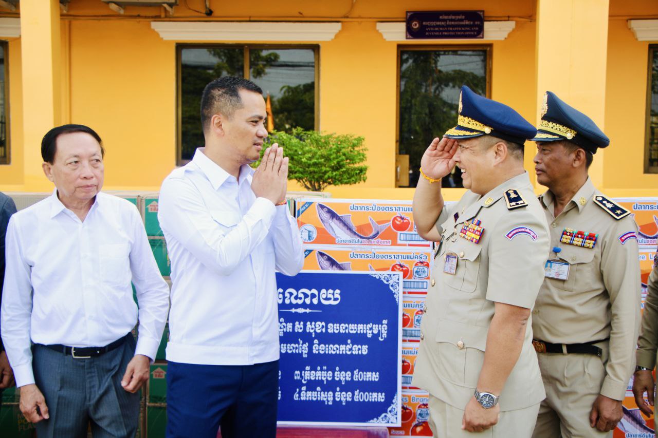 ក្នុងឱកាសនោះដែរ លោក អភិសន្តិបណ្ឌិត ស សុខា ក៏បាននាំយកនូវគ្រឿងឧបភោគ-បរិភោគ មួយចំនួនរួមមាន៖ អង្ករ ចំនួន ១០តោន មី ចំនួន ៥០កេសធំ ត្រីខកំប៉ុង ចំនួន ៥០កេស ទឹកបរិសុទ្ធ ចំនួន ៥០០កេស អាវភ្លៀង ចំនួន ៣០០អាវ ប្រគល់ជូនស្នងការដ្ឋាននគរបាលខេត្ត និងបានឧបត្ថម្ភថវិកា ជូនដល់កងកម្លាំងនគរបាល ចំនួន ១០០០នាក់ ដោយក្នុងម្នាក់ៗ ចំនួន ៥មុឺនរៀល ផងដែរ ៕