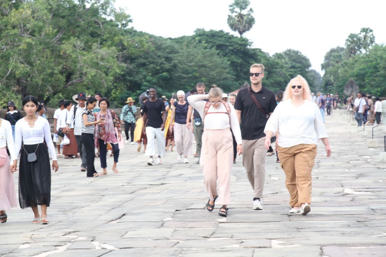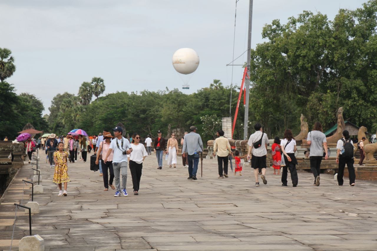 ភ្ញៀវទេសចរជាតិ និងអន្តរជាតិ បង្ហាញពីមោទកភាពនៅពេលបានដើរឆ្លងកាត់ស្ពានហាលប្រាសាទអង្គរវត្ត