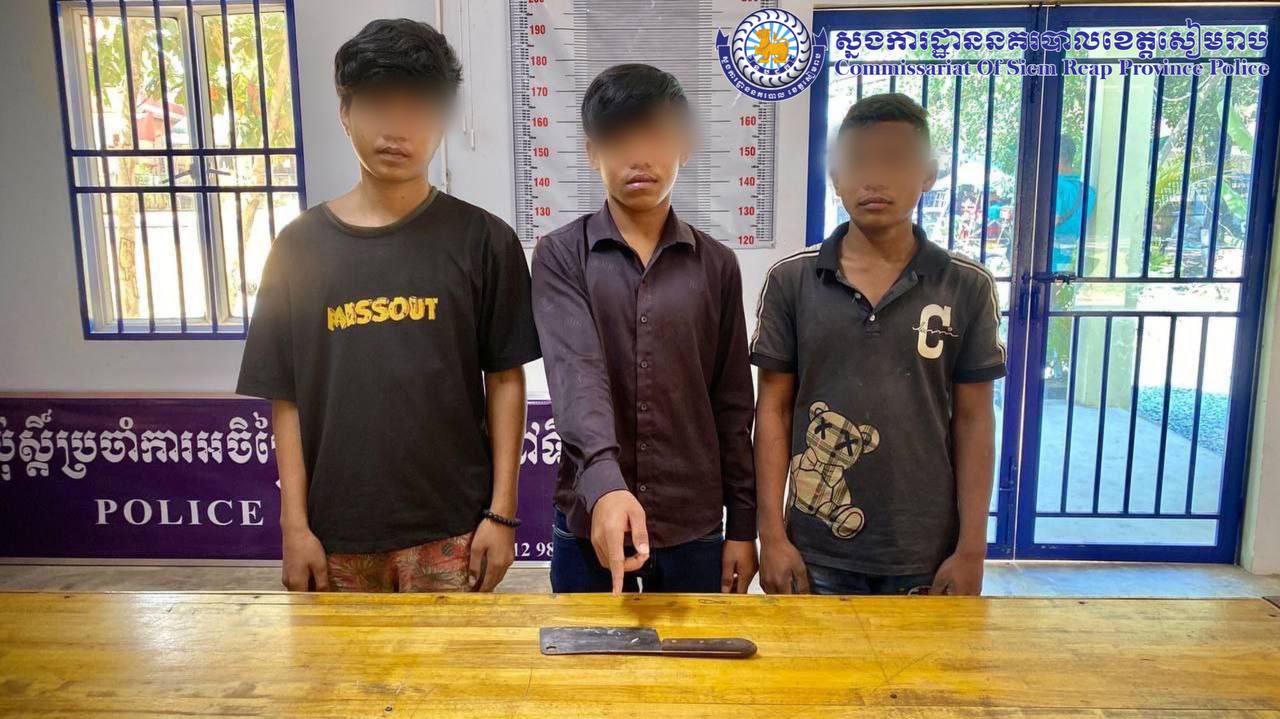 កម្លាំងនគរបាលខេត្តសៀមរាប ចាប់ក្មេងទំនើង៣នាក់ ក្រោយថតបង្ហោះក្នុងបណ្ដាញសង្គម កាន់កាំបិតគំរាមគូរជម្លោះ