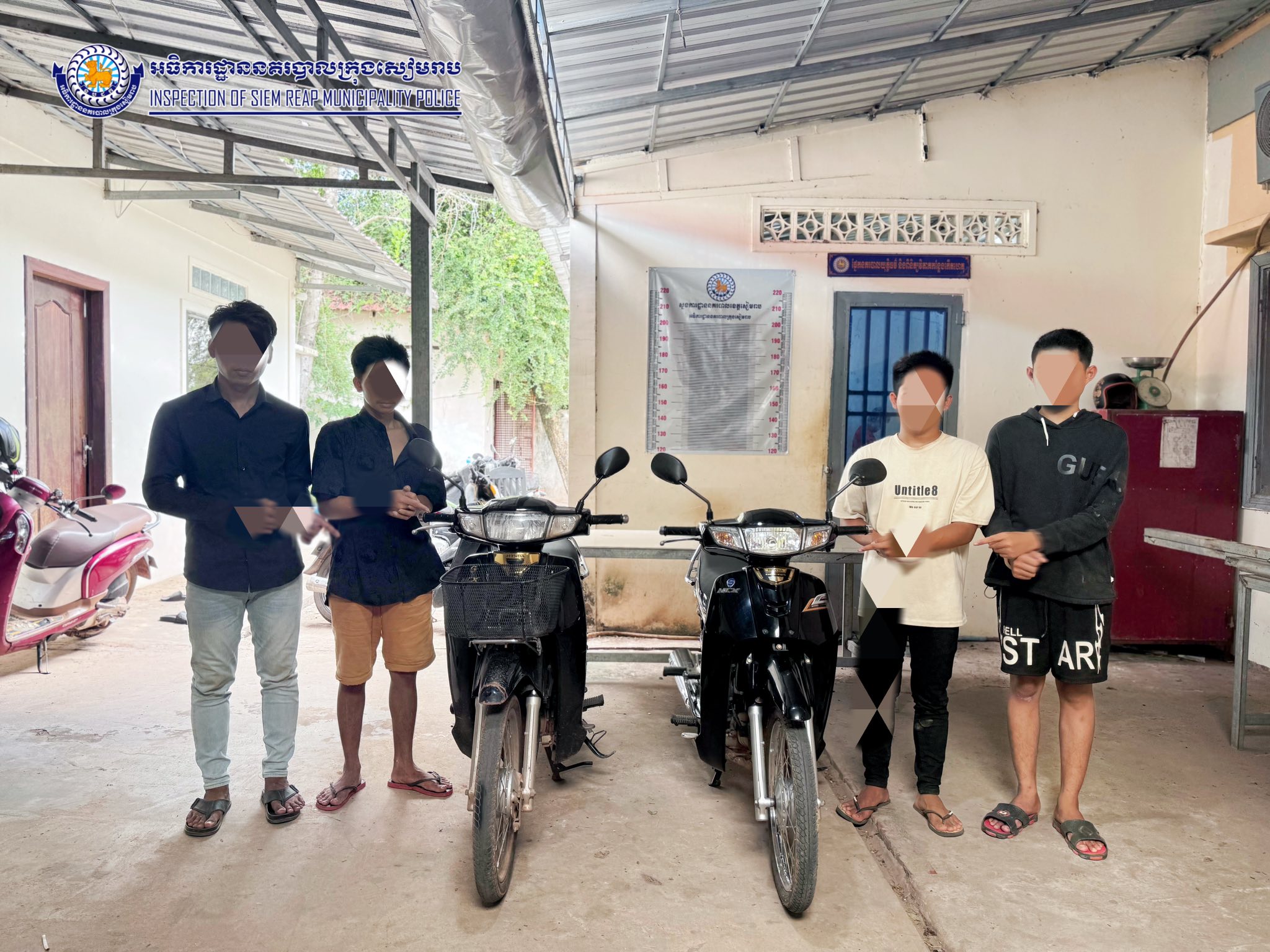 កម្លាំងនគរបាលខេត្តសៀមរាប ឃាត់ខ្លួនជនសង្ស័យ ០៤ នាក់ បញ្ជូនទៅតុលាការ ពាក់ព័ន្ធករណីលួចម៉ូតូ