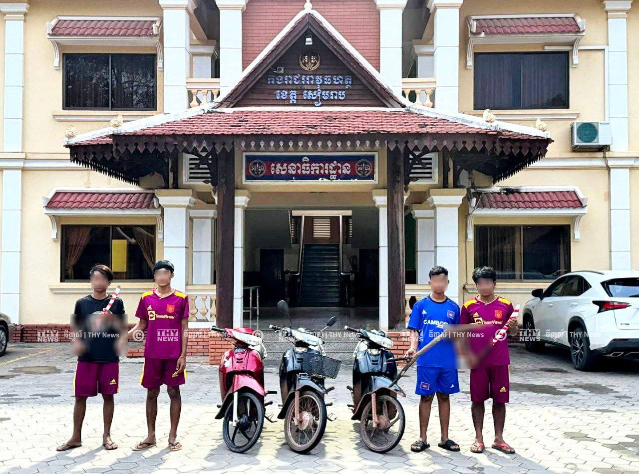កងរាជអាវុធហត្ថខេត្តសៀមរាប ឃាត់ខ្លួនជនសង្ស័យ ៤ នាក់ បញ្ជូនទៅសាលាដំបូងខេត្ត ពាក់ព័ន្ធករណី ធ្វើអោយខូចខាតដោយចេតនា និងកាន់កាប់អាវុធសម្រាប់ប្រហារផ្សេងទៀត