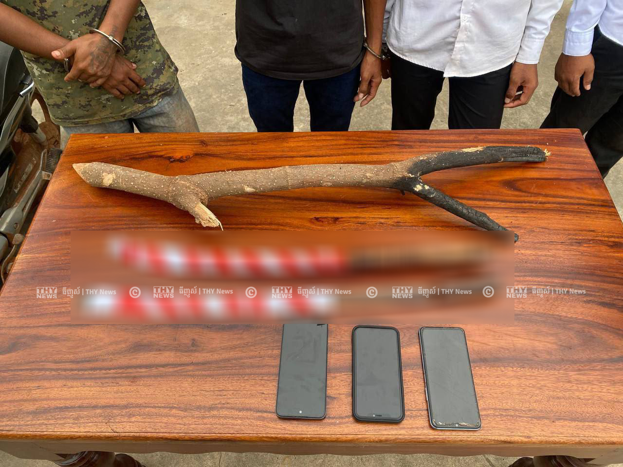 វត្ថុតាងចាប់យកមាន ៖ ម៉ូតូចំនួន ០៣គ្រឿង ដាវចំនួន ០២ដើម និងទូរសព្ទ័ចំនួន ០៣គ្រឿង ។