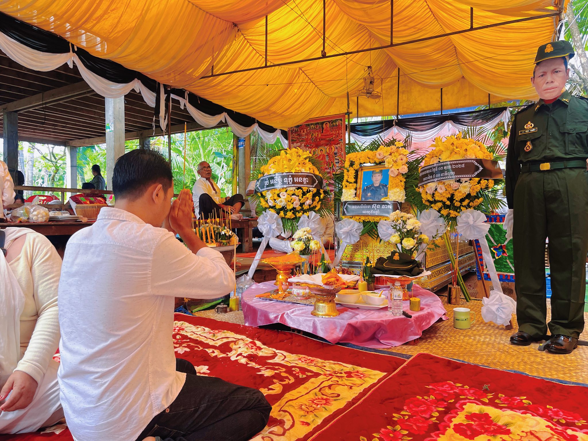 តាមសម្តីគ្រួសារសពបានឲ្យដឹងថា ៖ ប្តីរបស់គាត់ ជាទាហានជួរមុខ នៅ វរសេនាតូច កាំភ្លើងធំ ឈរជើងនៅច្រកជាំស្រងាំ ភ្នំ២០០ ខេត្តឧត្តរមានជ័យ ដោយសុំច្បាប់មេចំនួនមួយថ្ងៃមកចូលរួមពិធីបុណ្យបងថ្លៃ ពេលត្រឡប់ឡើងទៅបន្ទាយវិញ ជាអកុសល ស្រាប់តែជួបគ្រោះថ្នាក់ចរាចរណ៍ស្លាប់បាត់បង់ជីវិតនៅតាមផ្លូវ ។