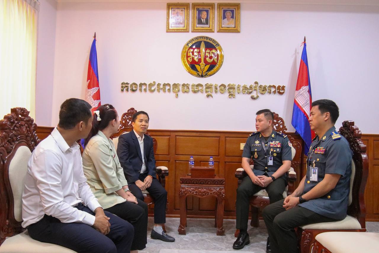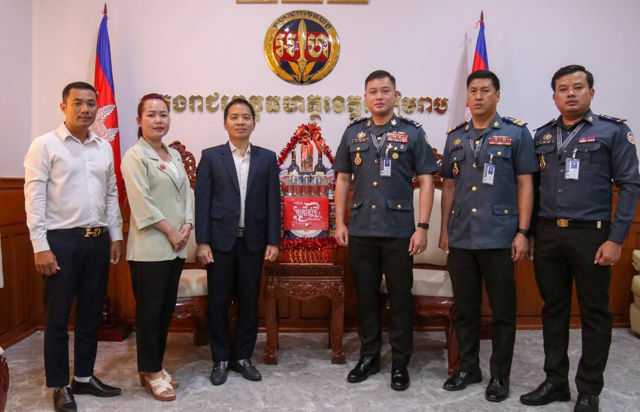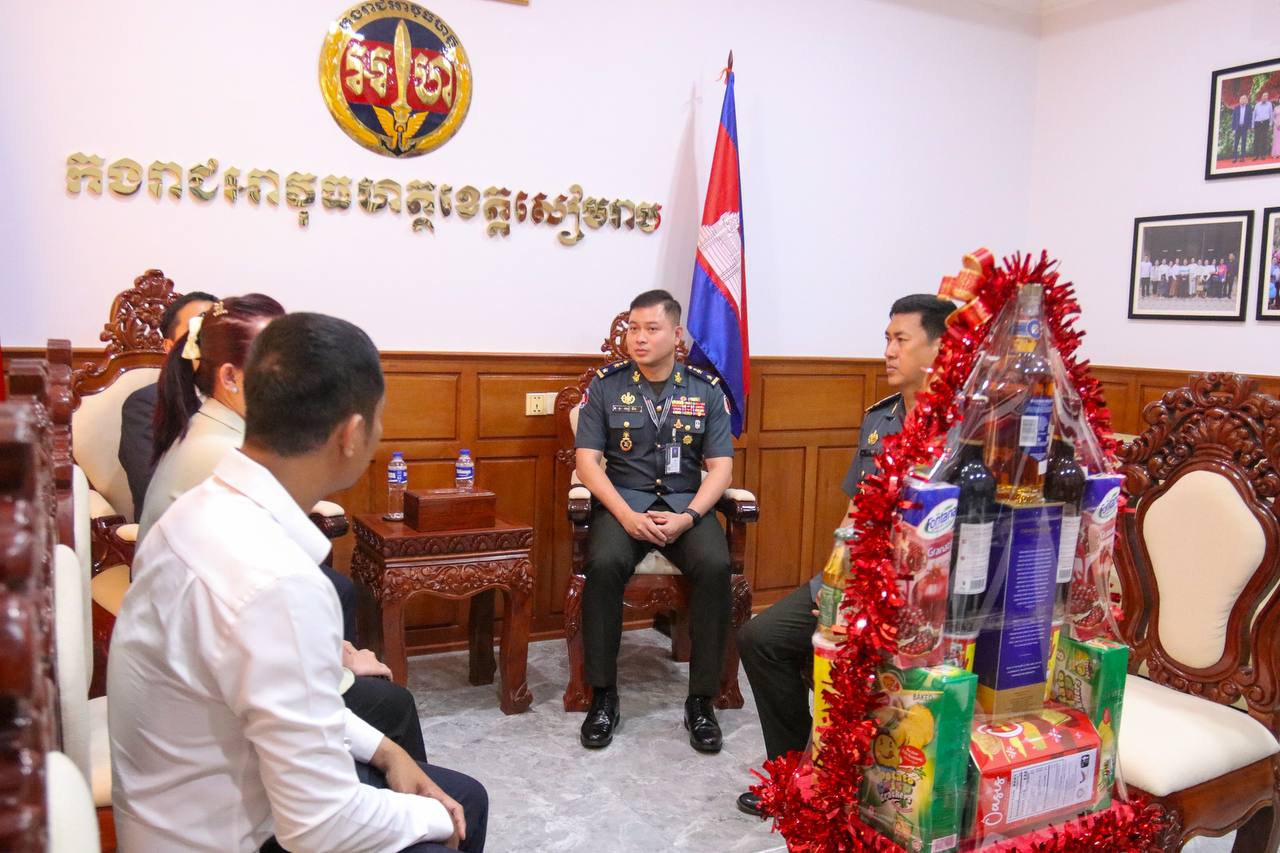 ខេត្តសៀមរាប ៖ នារសៀលថ្ងៃចន្ទ ទី៦ ខែមេសា ឆ្នាំ២០២៦ នៅបញ្ជាការដ្ឋាន កងរាជអាវុធហត្ថខេត្ត លោកឧត្តមសេនីយ៍ត្រី សៀ ទីន មេបញ្ជាការ កងរាជអាវុធហត្ថខេត្តសៀមរាប ទទួលស្វាគមន៍ Mr Giap Hong Hoan នាយកសាខាក្រុមហ៊ុនមិត្តហ្វូន ប្រចាំខេត្តសៀមរាប និងក្រុមការងារ អញ្ជើញជួបសំណេះសំណាលសម្តែងការគួរសម ពិភាក្សាការងារ និងជូនពរ នាឱកាសពិធីបុណ្យចូលឆ្នាំថ្មីប្រពៃណីជាតិខ្មែរ ឆ្នាំមមី អដ្ឋស័ក ព.ស ២៥៧០ គ.ស ២០២៦ ដែលនឹងឈានមកដល់នាពេលខាងមុខនេះ។