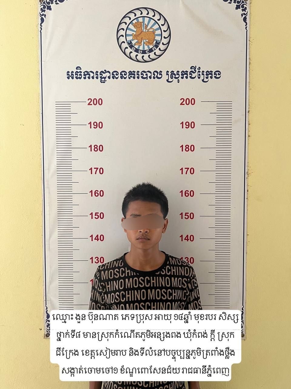 ដោយអនុវត្ត តាមបទបញ្ជា ដ៏ម៉ឺងម៉ាត់របស់នាយឧត្តមសេនីយ៍ ស ថេត អគ្គស្នងការនគរបាលជាតិ ក្រោមការយកចិត្តទុកដាក់ខ្ពស់ពីសំណាក់ ប្រាក់ សោភ័ណ ប្រធានគណៈបញ្ជាការឯកភាពរដ្ឋបាលខេត្តសៀមរាប និងការដឹកនាំបញ្ជាផ្ទាល់របស់លោកឧត្តមសេនីយ៍ទោ ហួត សុធី ស្នងការ នៃស្នងការដ្ឋាននគរបាលខេត្តសៀមរាប ព្រមទាំងមានកិច្ចសម្របសម្រួលនីតិវិធីពីលោក សៀង សុខ ព្រះរាជអាជ្ញា នៃអយ្យការអមសាលាដំបូងខេត្តសៀមរាប កម្លាំងផែននគរបាលព្រហ្មទណ្ឌខេត្តសៀមរាប សហការជាមួយនគរបាលស្រុកជីក្រែង បានបើកការស្រាវជ្រាវភ្លាមៗ រហូតឈានដល់ធ្វើការឃាត់ខ្លួន ក្រុមក្មេងទំនើង ជាជនសង្ស័យ បន្តបន្ទាប់ ចំនួន០៧ នាក់ (០២ ក្រុមផ្សេងគ្នា)។