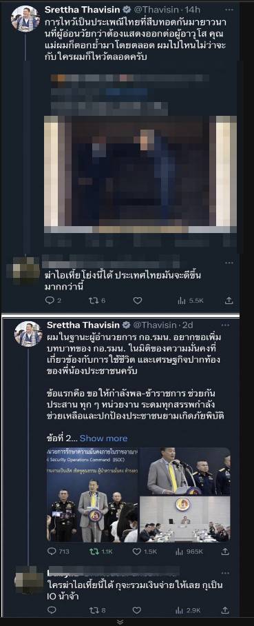 ថៃ៖ យុវជនម្នាក់បានប្រើបណ្ដាញសង្គម X ដែលពីមុនហៅថា Twitter ដោយបានគំរាមសម្លាប់នាយករដ្ឋមន្ត្រីថៃលោក ស្រេដ្ឋា ថាវីស៊ីន។ ជនសង្ស័យឈ្មោះ គ្រីសដា ផាន់បាងកែវ ហៅប៊េង វ័យ២៩ឆ្នាំ ត្រូវសមត្ថកិច្ច ចាប់ខ្លួននៅសង្កាត់ថុនបុរី ទីក្រុងបាងកក។ ជនរូបនេះបានទទួលស្គាល់កំហុស និងប្រាប់មូលហេតុដែលគេប្រមាថ គឺដោយសារខ្លួនខកចិត្តនឹងគណបក្សនយោបាយមួយនេះ ចំពោះបញ្ហាដែលកើតឡើងកន្លងមក ទាំងមុននិងក្រោយពេលបោះឆ្នោត ដូច្នេះព្រោះតែការមិនពេញចិត្ត ទើបធ្វើឱ្យខ្លួន បាត់បង់ ការពិចារណា មិនអាចទប់សតិអារម្មណ៍ក៏ប្រើសម្ដីមិនសមរម្យទាំងនោះ។